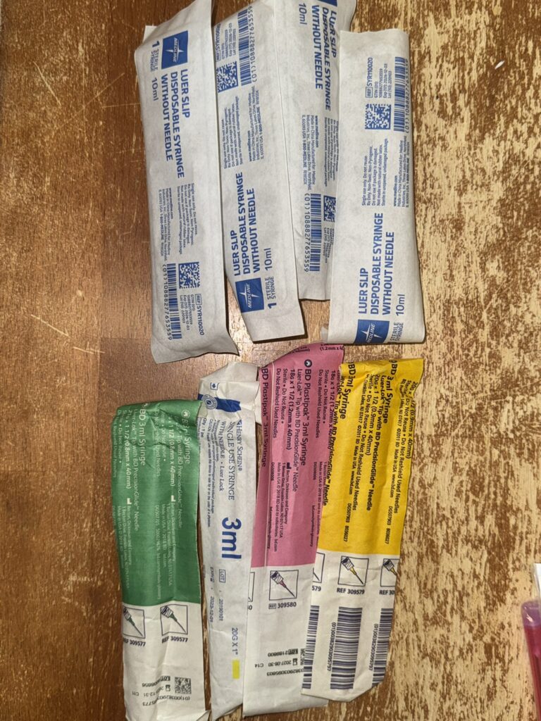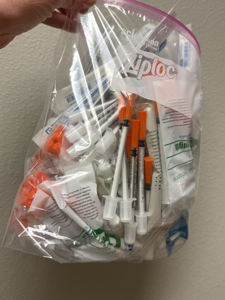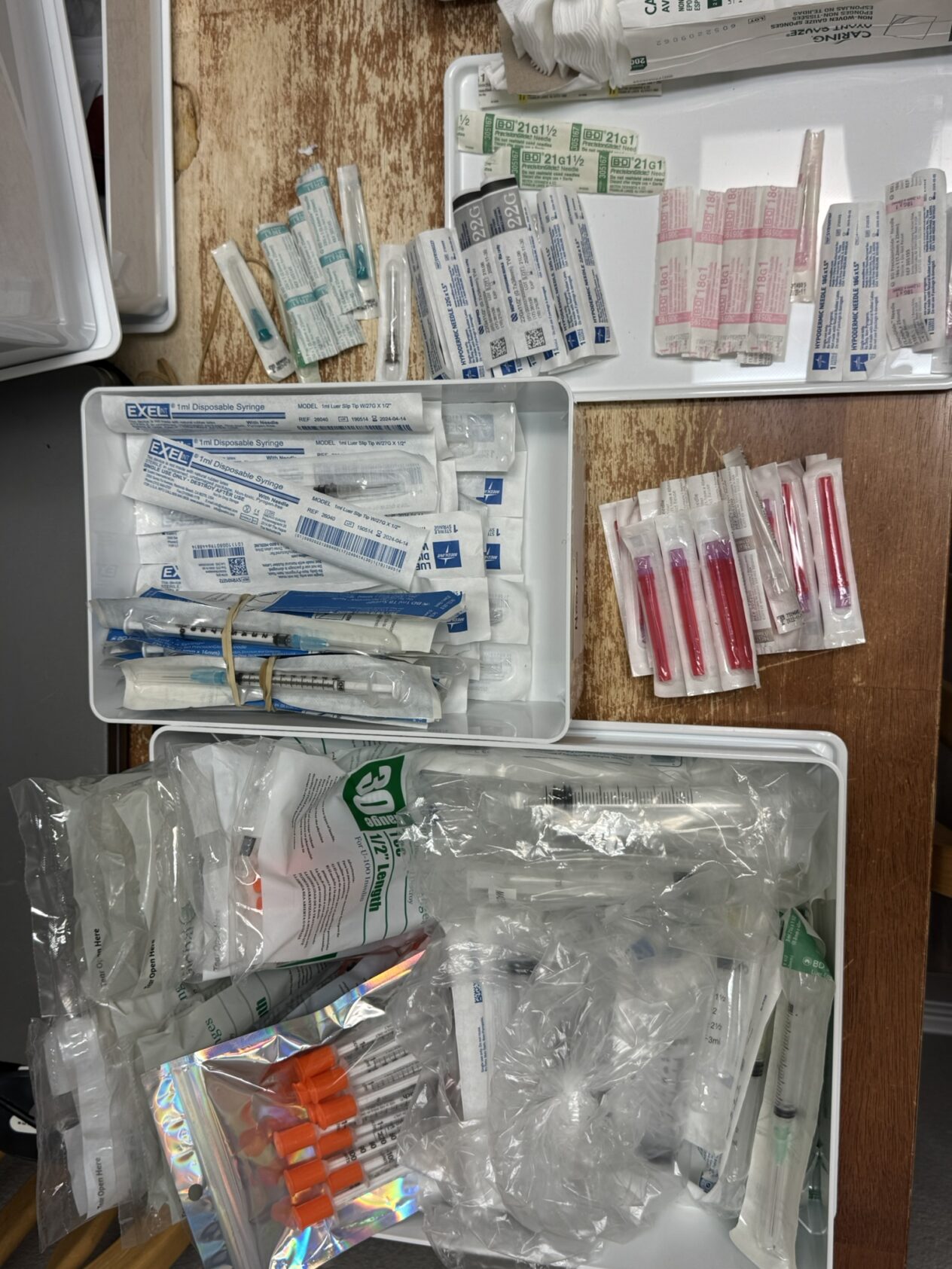 Assorted size needles and syringes, including filter needles. Gallon ziploc full of insulin/TB syringes, handful of 10 mL and 3 mL and an assortment of needles including filter needles. $15 for all
